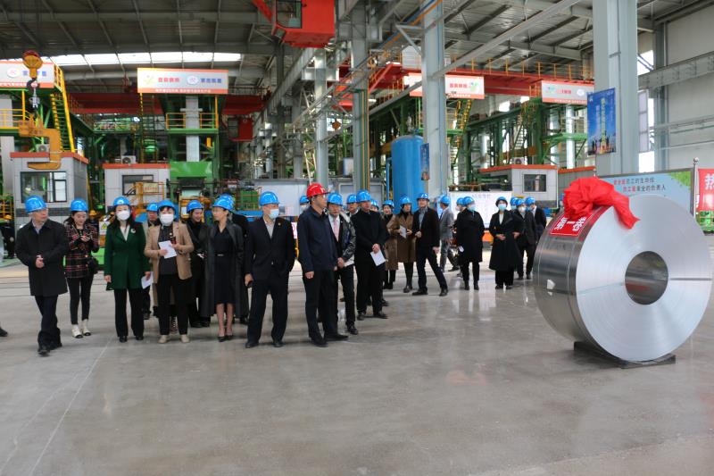 考察團(tuán)一行參觀了我公司新建年產(chǎn)200萬噸冷軋、鍍鋅項目,在劉欣書記的引導(dǎo)下,各位委員先后參觀了原料庫、酸軋車間、鍍鋅車間、成品庫,了解了黑色的熱軋帶鋼是如何經(jīng)過酸洗、冷軋、鍍鋅蛻變?yōu)楣饬恋腻冧\帶鋼整體生產(chǎn)工藝。